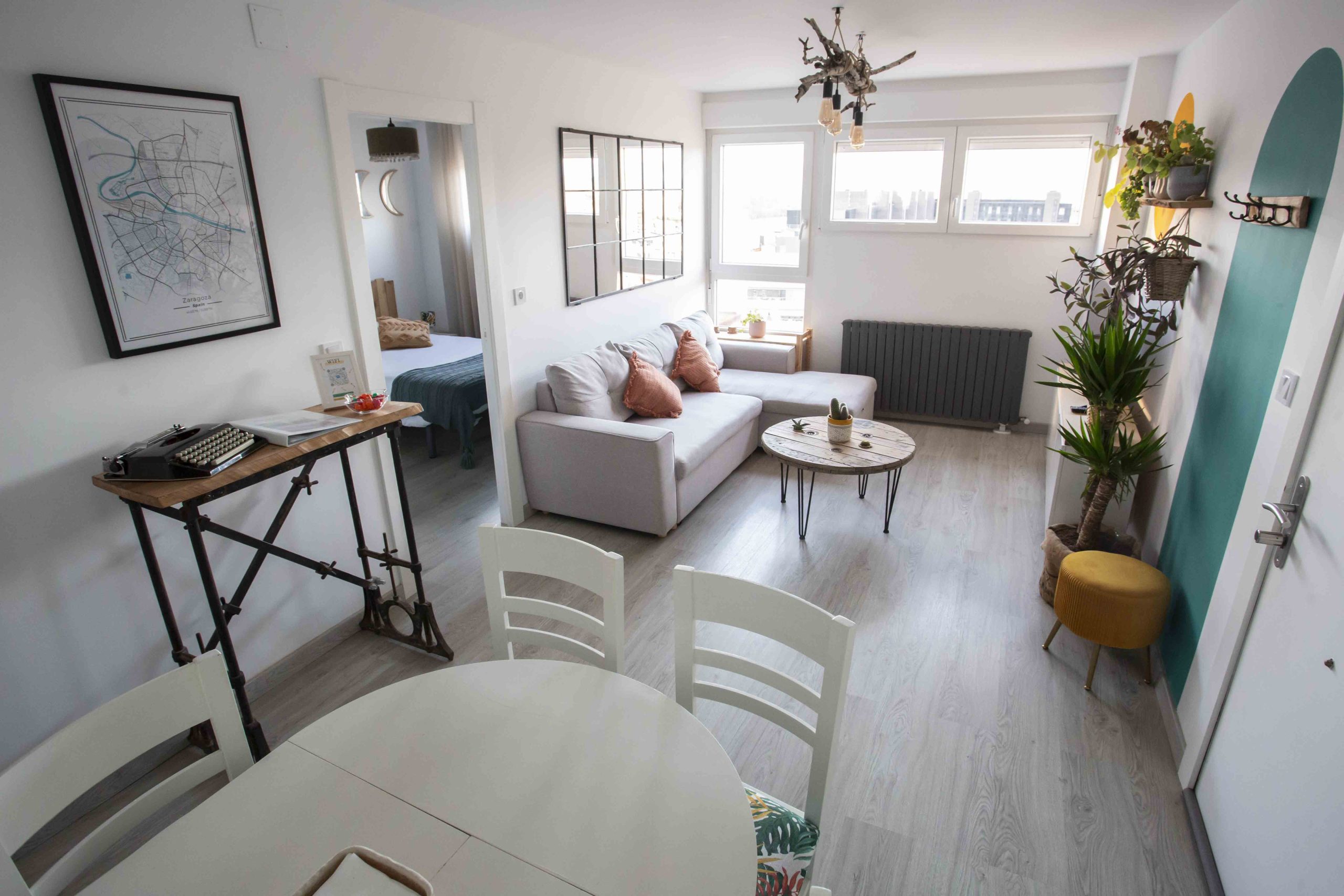 Te damos la bienvenida a nuestro acogedor piso turístico en Zaragoza. Un refugio a la orilla del río Ebro, donde la elegancia se encuentra con la sencillez. Cada rincón ha sido cuidadosamente decorado, fusionando elementos creados por nosotros con madera reciclada y toques de naturaleza, creando así un ambiente cálido y acogedor.