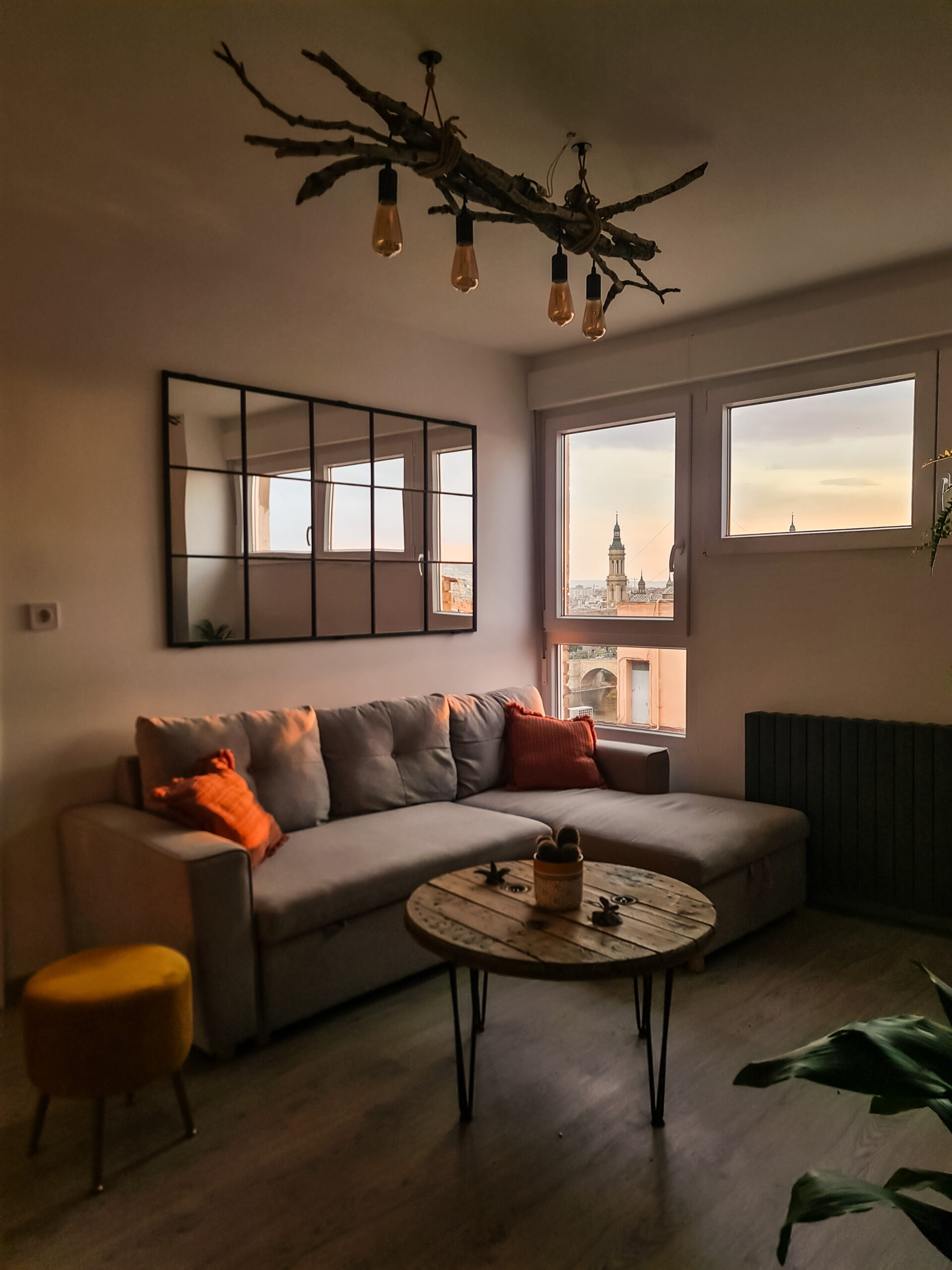 Explora la esencia única de nuestro piso turístico en Zaragoza a orillas del río Ebro. Desde el piso 14, disfruta de vistas cautivadoras de la basílica del Pilar y el puente de piedra. Con un diseño único que fusiona elementos creados por nosotros, madera reciclada y toques de verdor, cada rincón cuenta una historia de comodidad y estilo. Estas imágenes te invitan a hacer de nuestro piso tu hogar temporal en Zaragoza.